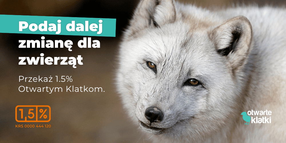 Przekazując 1,5 procent podatku, masz szansę przekuć efekty swojej pracy zawodowej w pomoc zwierzętom! Twój 1,5 procent podatku wspiera działania na rzecz skutecznych, systemowych zmian dla zwierząt, takich jak śledztwa i interwencje, reprezentowanie interesów zwierząt w procesach sądowych, rzecznictwo polityczne, kampanie społeczne oraz wywieranie presji na firmy i sieci handlowe.