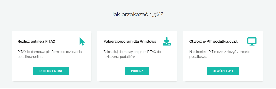 Niedawno opublikowaliśmy poradnik o rozliczaniu 1,5 procent podatku przez platformę PITax.pl. Jeśli chcesz się w taki sposób rozliczyć, kliknij tutaj.
