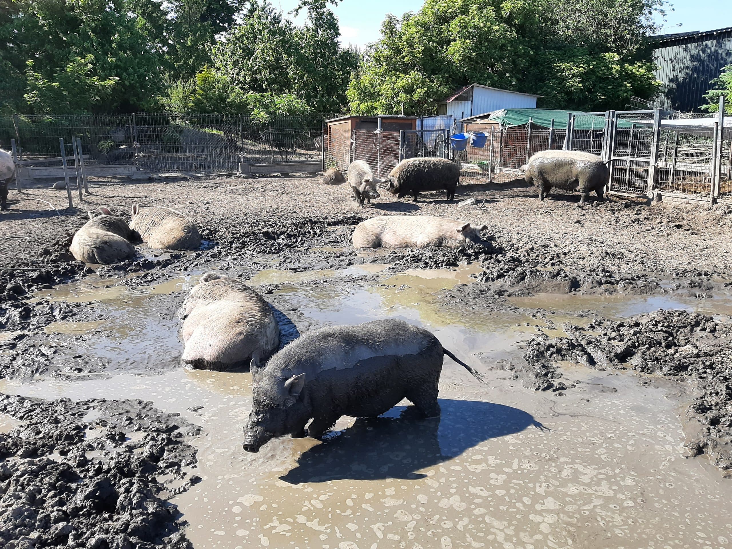 Każdą wolną chwilę poświęcamy na sprawianie świniom przyjemności. One muszą być codziennie dopieszczone, potrzebują tego jak powietrza. Głaskanie, drapanie po brzuszkach, rozmowy, wygłupy - to nasze codzienne przyjemne obowiązki. Kiedy jesteśmy zajęte, świniaki same wymyślają sobie zajęcia. Jedne ryją, inne kopią ogromne doły. A po robocie wylegują się na słońcu, leżą w świńskim spa albo odwiedzają się w zagrodach. Czasem się kłócą i wtedy słychać je zapewne w całej wiosce. Lubią się wygłupiać, prowokują się nawzajem do gonitw. Maluchy ćwiczą zapasy przygotowując się do przyszłych walk o pozycję w stadzie. Ciągle coś się dzieje i ciągle jest gwarno, bo świnie to straszne gaduły.