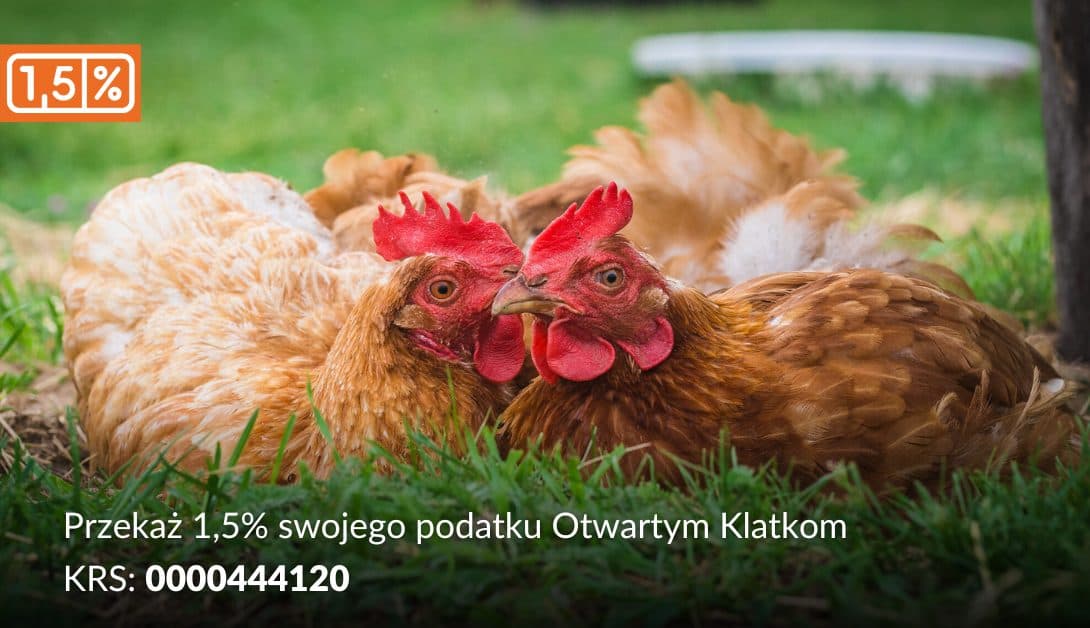 W Otwartych Klatkach stawiamy na skuteczne działania dla poprawy losu zwierząt cierpiących w hodowli przemysłowej. Dzięki zaangażowaniu osób, którym zależy na zwierzętach, w 2025 roku udało się doprowadzić do wprowadzenia zakazu hodowli zwierząt na futra. Żadne z naszych działań nie byłoby możliwe bez wsparcia takich osób, jak Ty! Przekaż nam 1,5% swojego podatku, wpisując w deklaracji PIT numer KRS: 0000444120 i bądź częścią dobrej zmiany dla zwierząt!