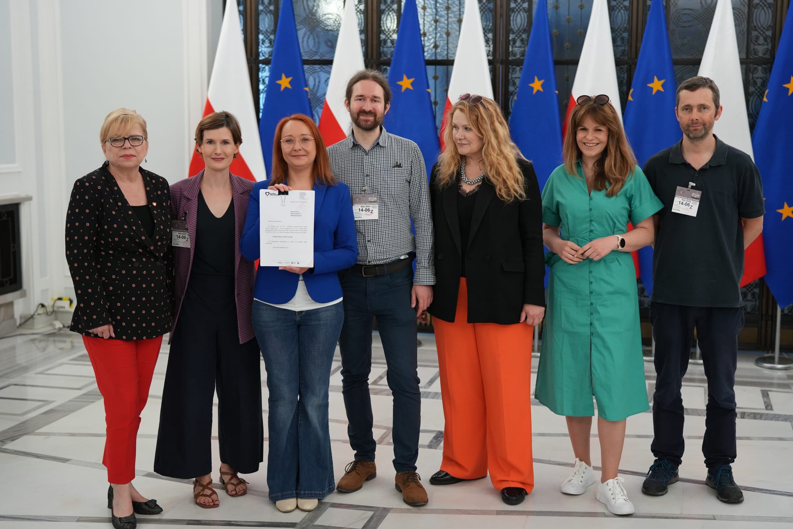 Złożenie projektu ustawy zakazującej hodowli zwierząt na futro do Marszałka Sejmu, 14.06.2024. Od lewej: posłanka Gabriela Lenartowicz, Aleksandra Ozimek (Otwarte Klatki), posłanka Małgorzata Tracz, Mikołaj Jastrzębski (Fundacja Viva!), posłanka Katarzyna Piekarska, posłanka Dorota Olko, Cezary Wyszyński (Fundacja Viva!)Hodowcy będą próbować zablokować zakaz