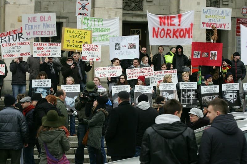 mieszkańcy wsi protestujący przeciwko fermom norekKłamstwa branży futrzarskiej