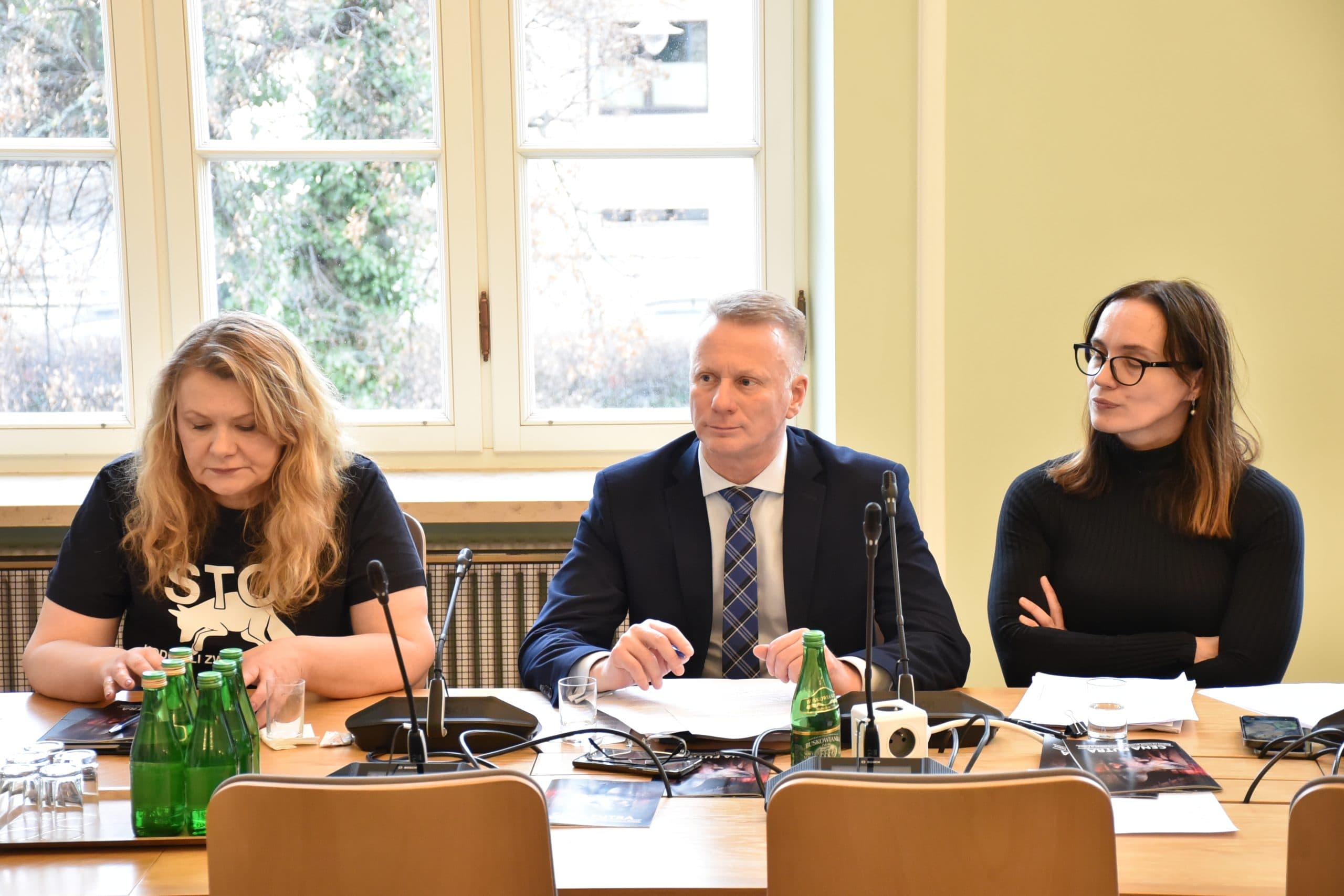 Od lewej: posłanka Katarzyna Piekarska, Wojciech Wojtyra (MRiRW), Justyna Ślusarczyk (MRiRW)Prawie połowa ferm norek w Polsce jest pusta