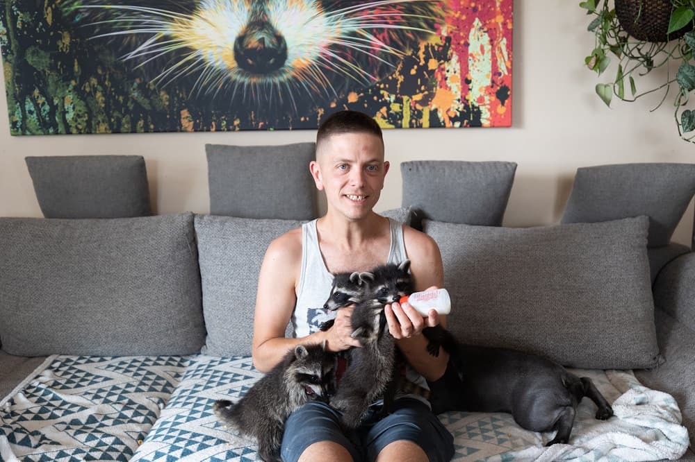 Grzegorz Dziwak: Zwierzęta były u mnie od zawsze, a azyl jest efektem potrzeby… Zaczęło się od azylu dla norek - uciekinierów z ferm, gdyż coraz częściej do mnie trafiały i nie było co z nimi zrobić. Od grudnia 2021 mamy nowe prawo o gatunkach obcych, które nakazuje eutanazje wszystkich odłowionych szopów - alternatywą jest dla nich azyl, a że szopów trafia do mnie bardzo dużo i nie zamierzam ich zabijać, stworzyłem Szopowisko.
